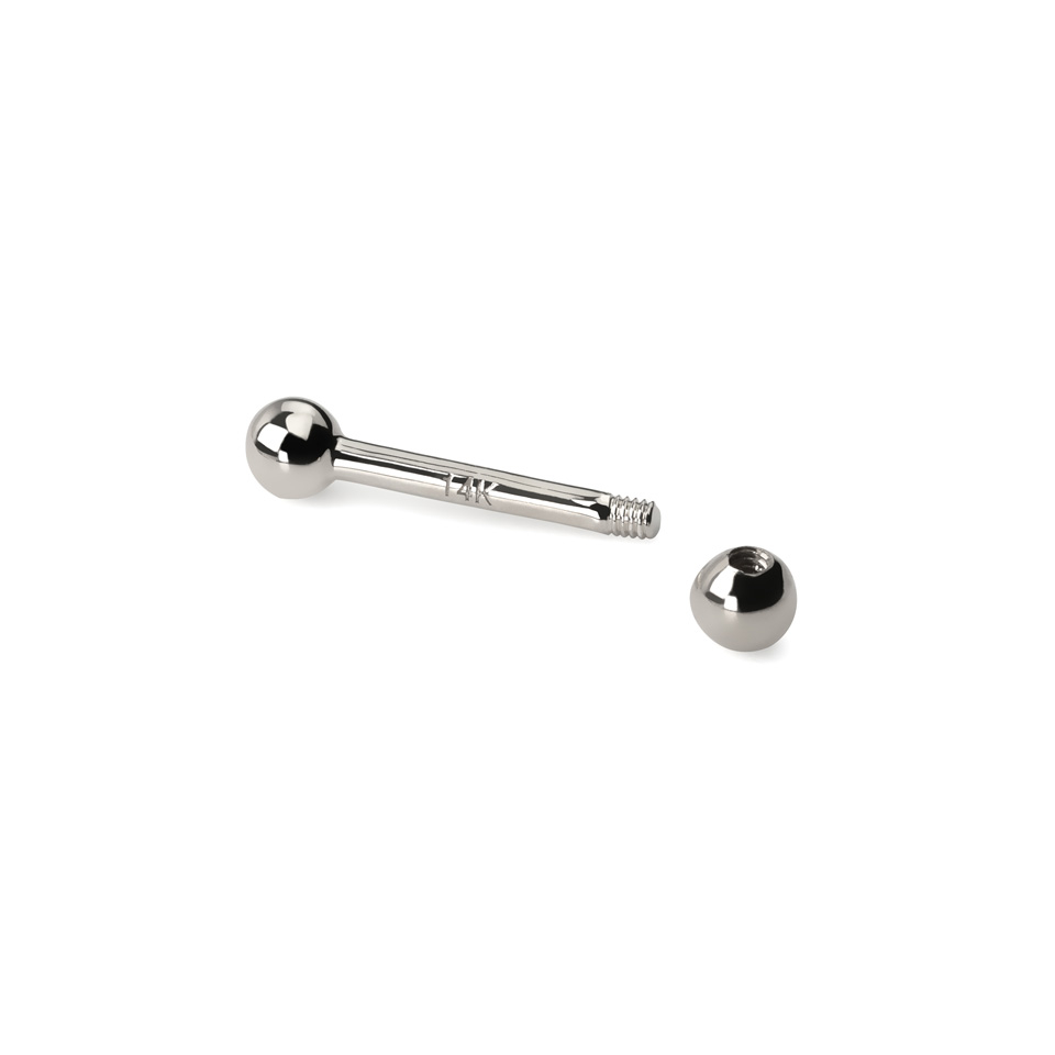 Esta es tu oportunidad de conseguir una joya super versátil en oro puro de 14 quilates. Esta joya consiste en una barra recta con una bola en cada extremo y está disponible en varios grosores de barra y longitudes, en función de la aplicación de la joya. El modelo más pequeño tiene un grosor de 1,2 mm y está disponible en 3 longitudes. La barra más gruesa tiene un grosor de 1,6 mm y está disponible en 5 tamaños.