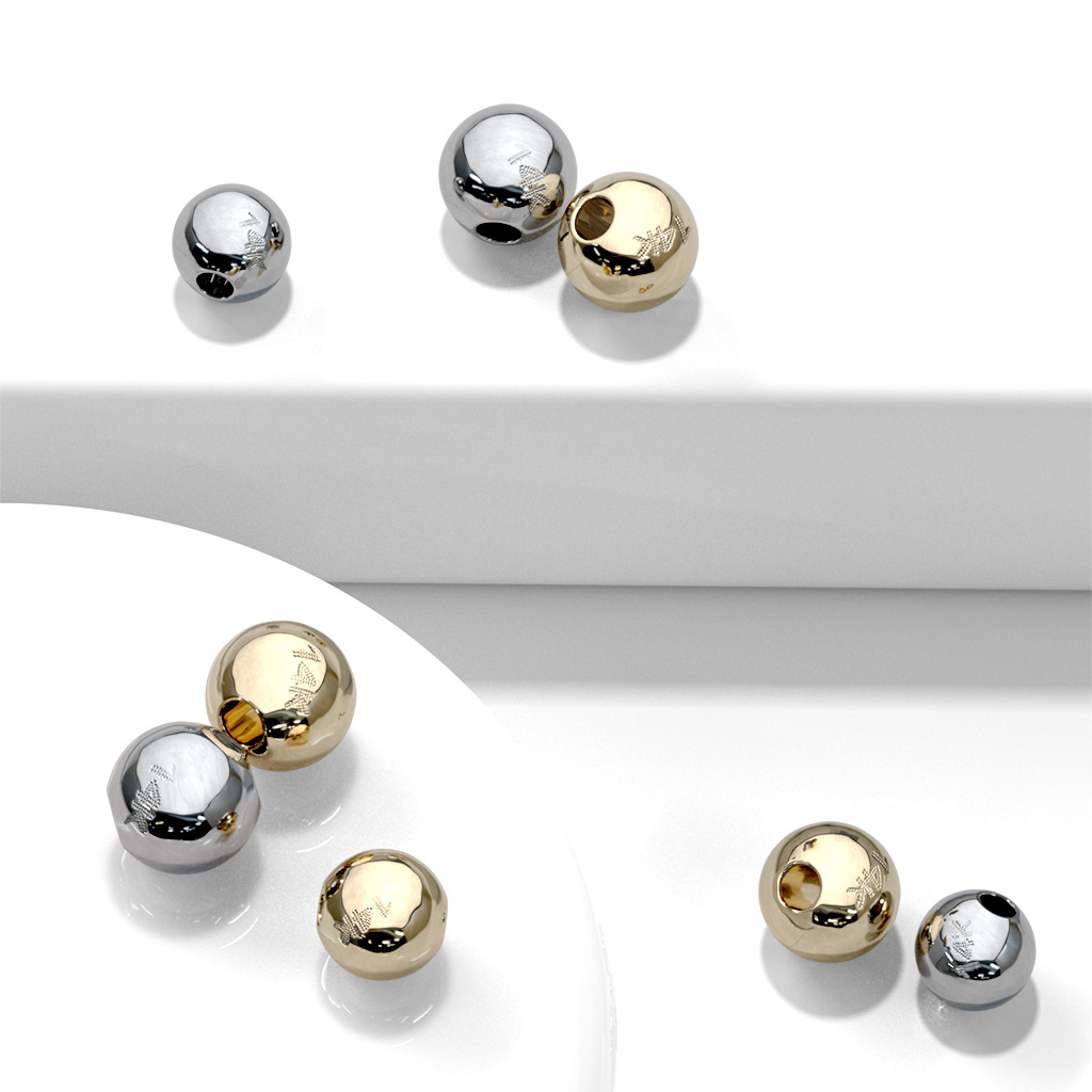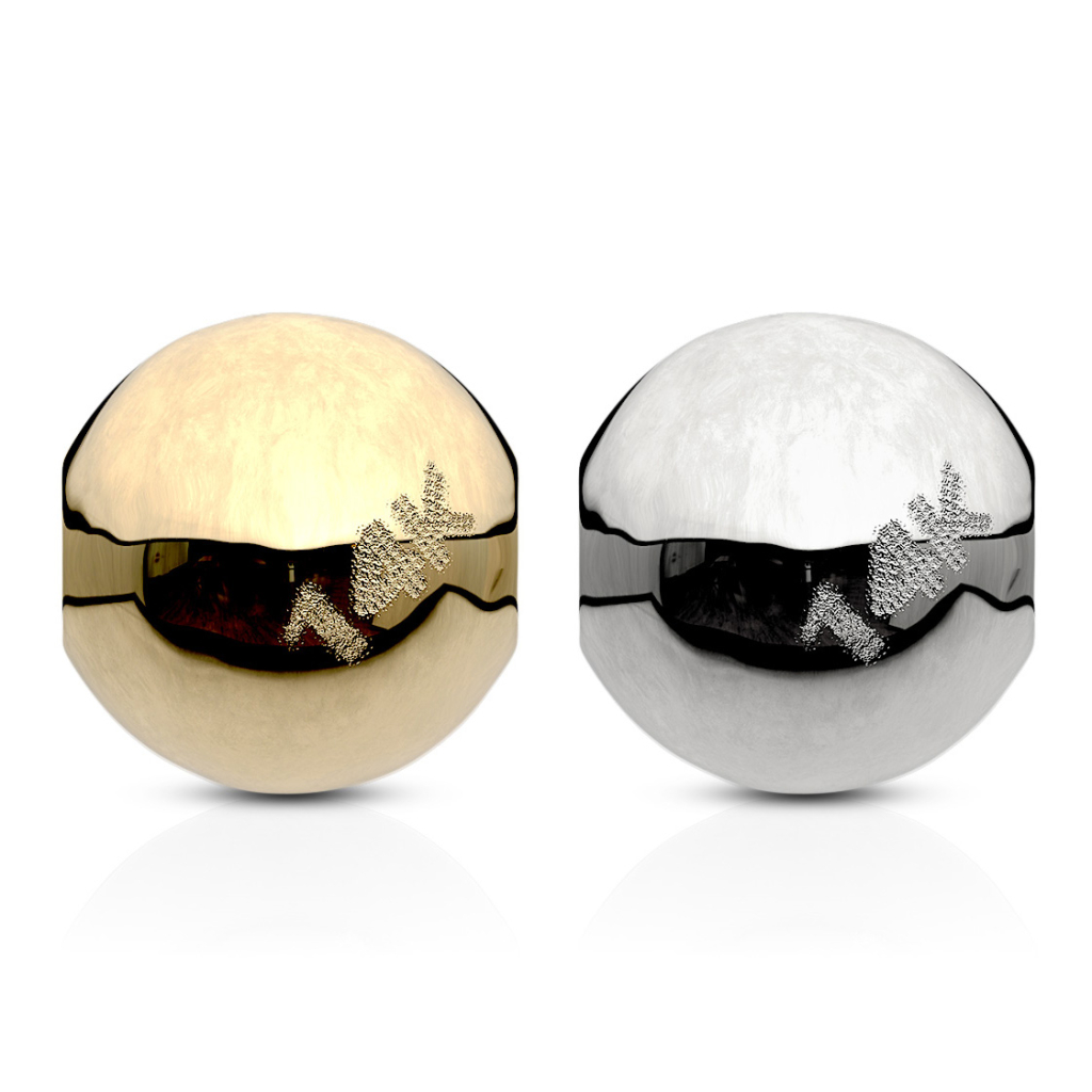 Como dijimos, la bola está hecha en oro de 14 quilates y puedes obtenerla en varios colores, por ejemplo, oro blanco. También está disponible en distintos tamaños, tanto para el grosor de la barra con la que la combinarás, como para el diámetro de la bola.