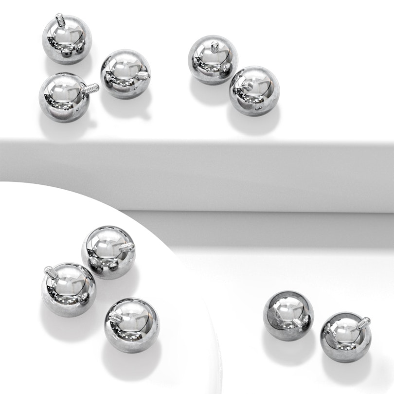 Es un poco difícil usar una joya sin nada para cerrarla; también sería muy aburrido tener una barra colgando sola en tu perforación. Esta bola es para joyas que se enroscan internamente. Está hecha en acero quirúrgico, material del cual obtiene su elegante color brillante. Puedes adquirirla en diferentes diámetros y grosores de rosca. Esto hace que la bola pueda adecuarse a muchas de tus joyas, por ejemplo a herraduras o barras curvadas.