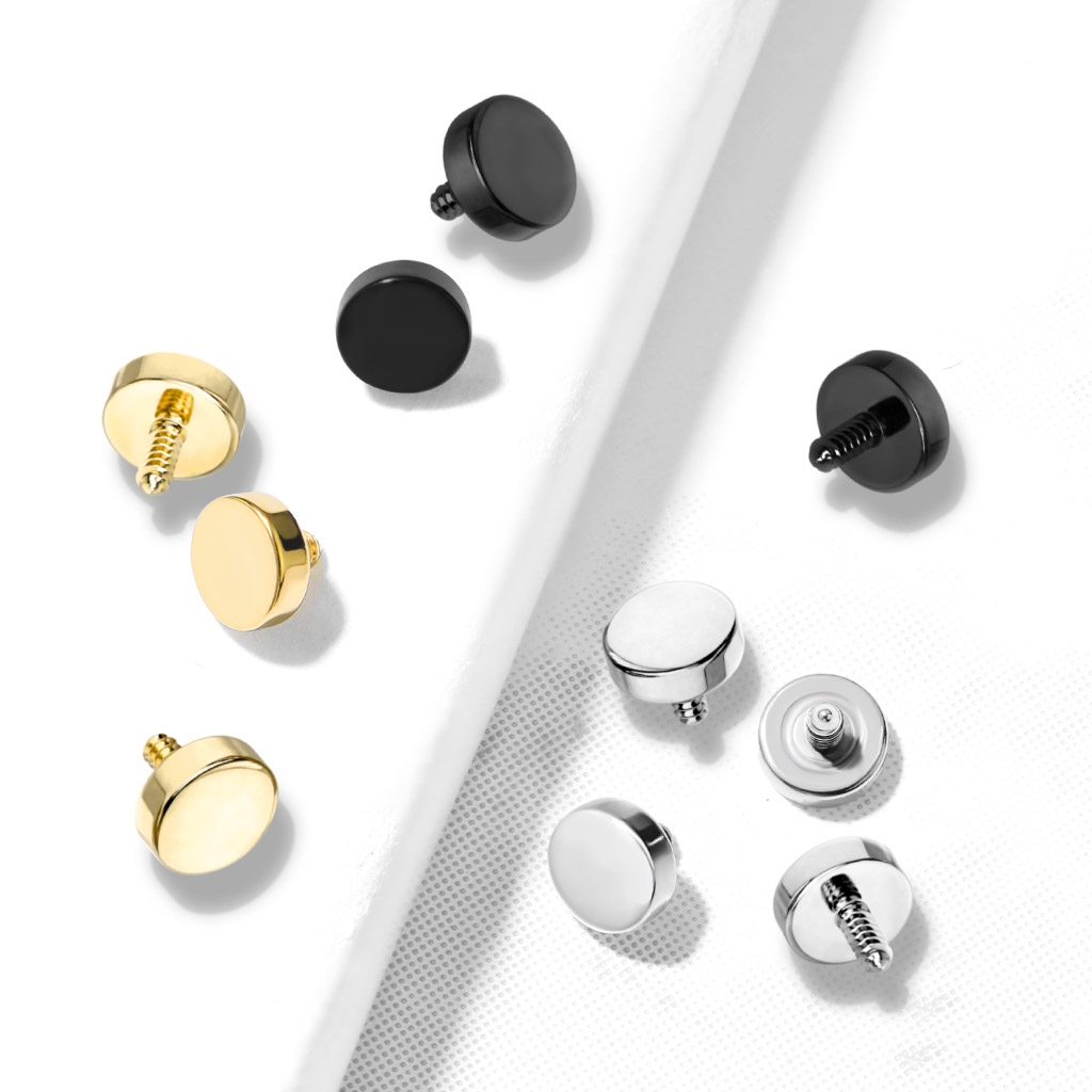 Esta bola plana en forma de disco es para barras de piercing con rosca interna. El disco se enrosca en la barra igual que una bola normal. Es adecuado para joyas con un grosor de barra de 1,2 mm.