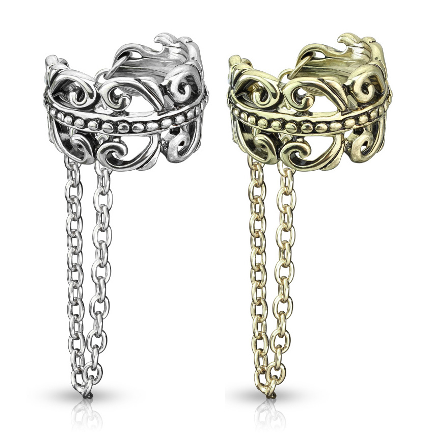 De la joya cuelga también una bonita cadena, la cual mide unos 30 mm aproximadamente. Cuando la joya está colocada en la oreja, la cadena quedará colgando cerca de la oreja, lo que conseguirá un fabuloso y precioso efecto.