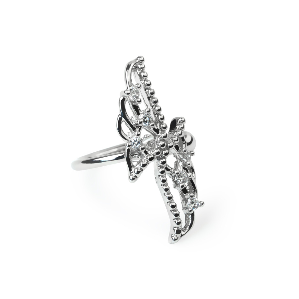 Este glamuroso ear cuff luce dos alas angelicales decoradas con piedras y bolitas. Al estar hecho de acero quirúrgico, no mancha la piel ni perderá su brillo, además de ser superduradero.