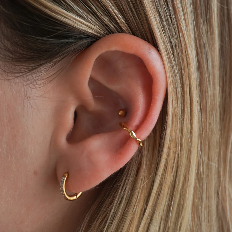 A veces menos es más. El ear cuff minimalista con torsión mantiene las cosas sencillas con una forma limpia y retorcida que completa tu estilo sin robar protagonismo.