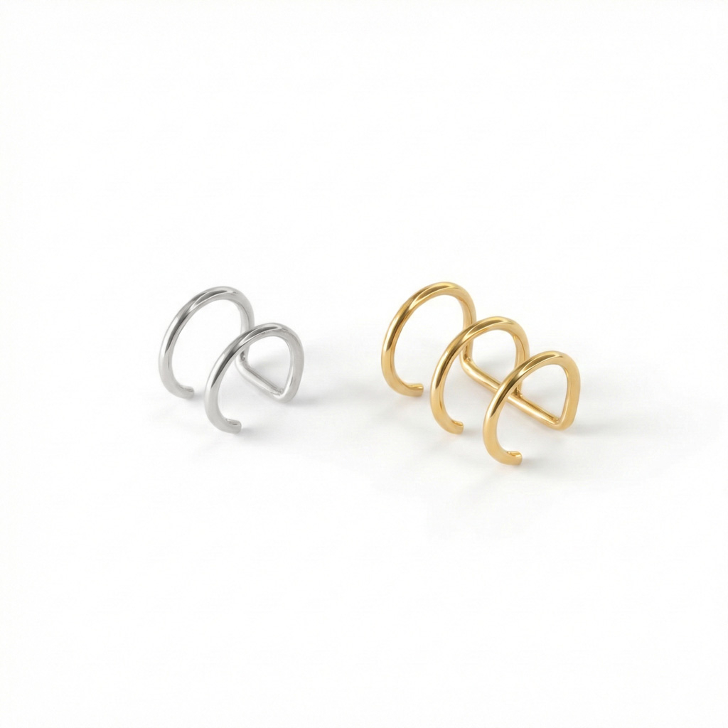 Esta joya consiste en dos o tres aros juntos, abiertos por uno de los extremos para que se puedan ajustar bien en tu oreja sin necesidad de que tengas ninguna perforación. Tan solo tendrás que colocar la joya en tu cartílago y presionarla ligeramente para que quede bien sujeta.