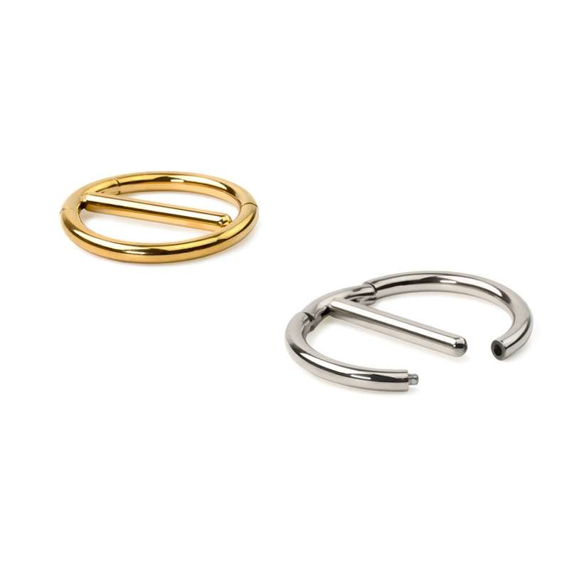¡Probablemente sea la joya para pezón con más facilidad de uso que encontrarás! Solo tienes que abrir las bisagras, insertar la barra en tu piercing y cerrar el aro alrededor de tu pezón. Gracias a la barra fija, el escudo se inserta y se extrae en un abrir y cerrar de ojos. ¿No te parece una joya de lo más revolucionaria?