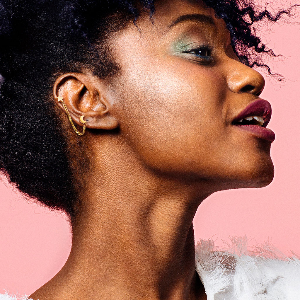 Si tienes la suerte de tener dos piercings en la oreja, puede que esta joya sea para ti. No todos los piercings son adecuados debido a la forma de las barras. Pero si tienes, por ejemplo, un piercing en el lóbulo de la oreja y otro más arriba, podrás ponértela.