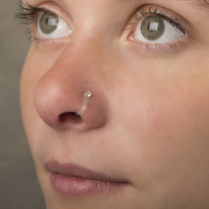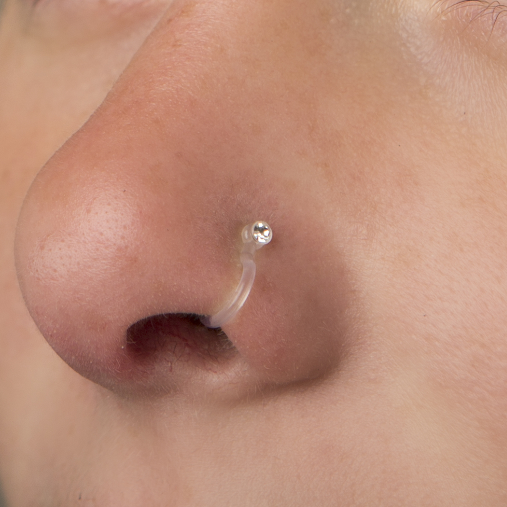Ya puedes conseguir este fake piercing con un pequeño brillante, sin tener que perforar tu nariz. Esta pequeña joya parece un aro de PTFE, que es un material plástico muy claro y blando, y tiene un brillante que queda justo encima de la aleta de la nariz. Pero en realidad, es un aro abierto que queda sujeto a la aleta nariz con solo presionarlo desde cada lado.