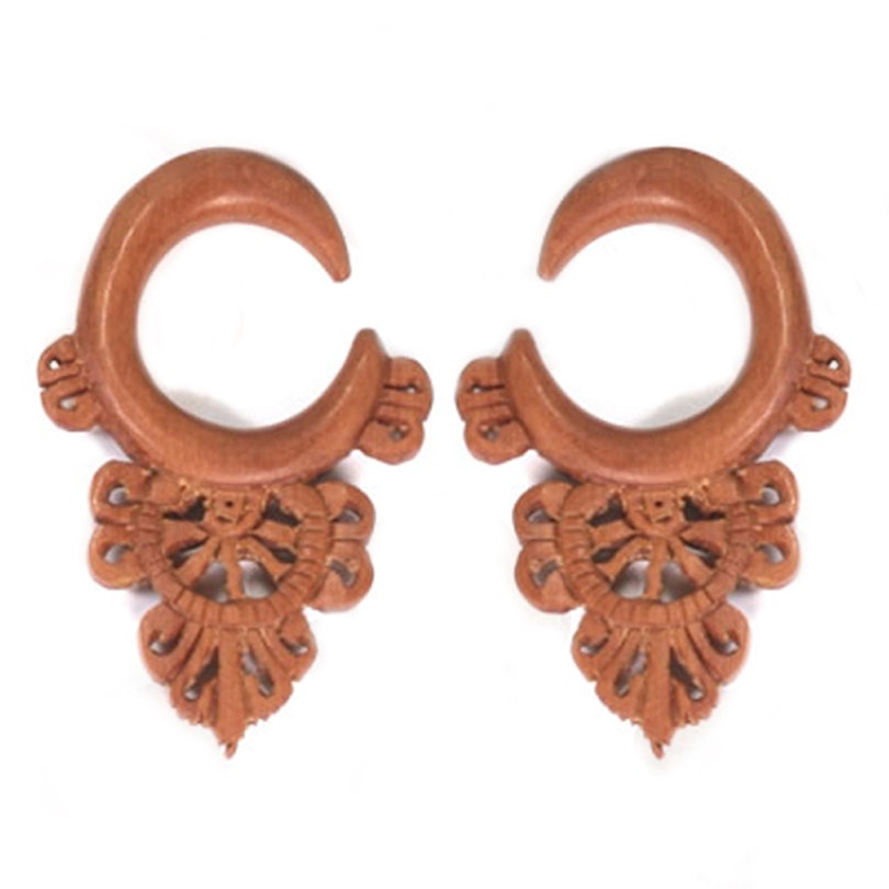 Esta joya colgará de tus dilataciones; está hecha de madera de palma de abanico (Sabal Palmetto). Este tipo de madera es de marrón oscuro con tonos rojizos, y dado que los anillos de la madera no se aprecian claramente; se usa a menudo en la joyería para piercings debido a su color uniforme.
