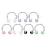 Aquí puedes conseguir una bonita herradura con el color de las bolas que quieras. Los colores disponibles son de lo más clásico: rojo para los más atrevidos, azul, verde, etc. Si no tienes miedo de darle color a tus piercings, quizás esta herradura sea perfecta para ti.