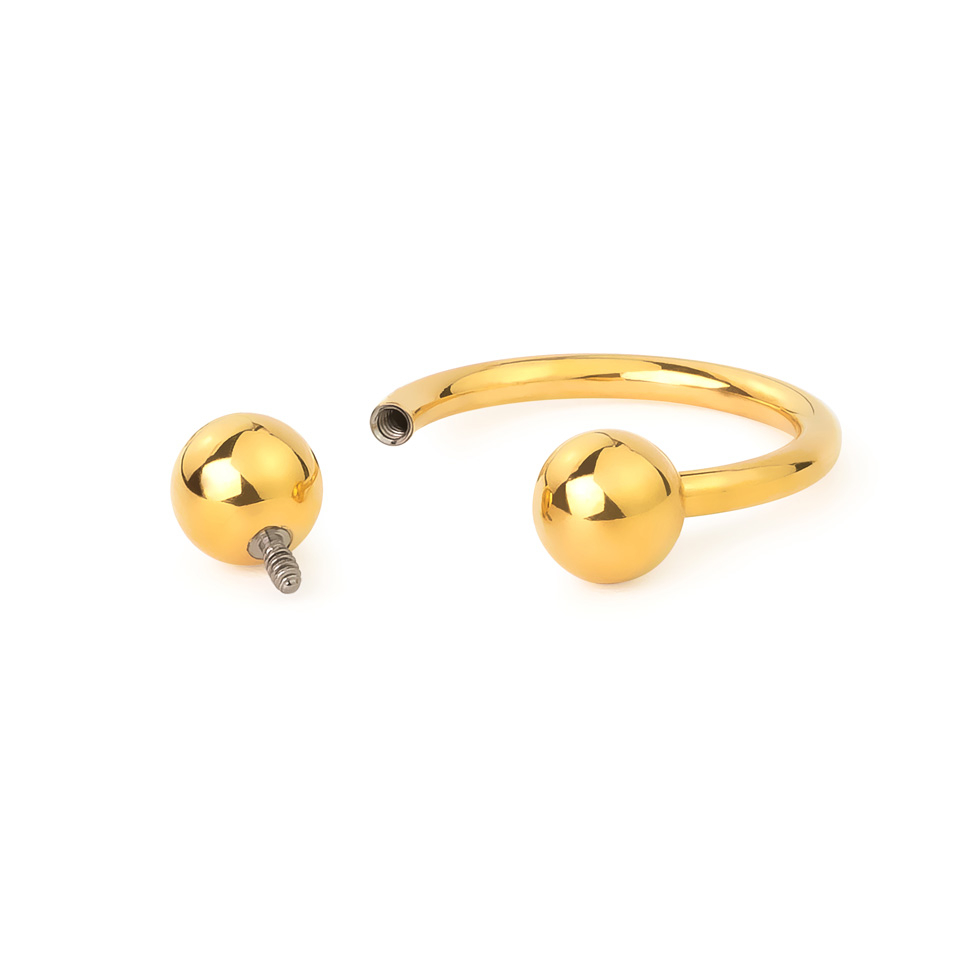 Este piercing es de titanio en varios colores y es ideal para piercings nuevos, ya que el titanio no contiene trazas de níquel. Ya no es necesario ponerse joyas de titanio mates y aburridas. Ahora puedes darle color a tu piercing con una herradura del color que más te guste. Otra ventaja de este producto es que tiene rosca interna, con la rosca dentro de la barra circular. Esto significa que las bolas tienen una rosca que va dentro de la herradura, en lugar de bolas que se enroscan por encima. Esto hace que el riesgo de dañar la piel durante la colocación sea mínimo.