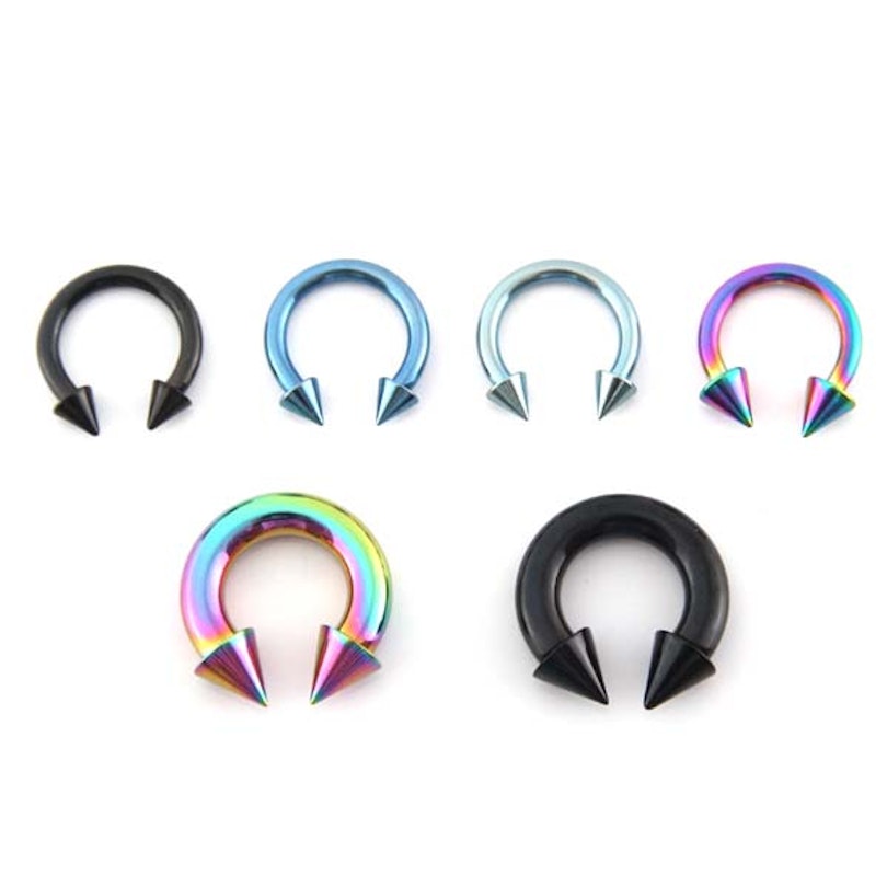Esta herradura tiene dos pinchos, que le darán a tu piercing un look provocador, y podrás elegirla en el color que quieras.