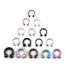Si necesitas darle un poco de color a tu piercing dilatado, aquí tienes la oportunidad de hacerlo con esta herradura grande, cuyo grosor de barra es de 2 mm o más, y que está disponible en varios colores.