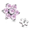 Esta estupenda flor con brillantes está disponible en cuatro colores distintos. Tendrás que elegir el color para los pétalos, mientras que el color del brillante en el centro será de un color distinto, para crear un bonito contraste. El brillante en el centro de la flor está un poco más elevado que los brillantes de los pétalos, lo cual proporciona un bonito efecto tridimensional a la joya.