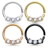 La mayoría de joyas para el septum son grandes y muy vistosas, y pocas consisten en un sencillo aro o en un aro segmentado. Además, si llevan brillantes parecen todavía más grandes y voluminosas. Si lo que quieres es un look totalmente opuesto y delicado, te invitamos a que descubras esta preciosidad que consiste en un aro con varios brillantes pequeños