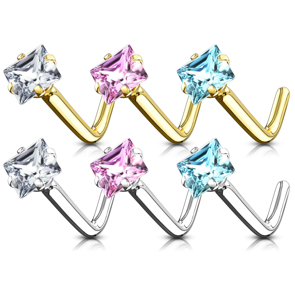 Nombre: Joya para la nariz de oro de 14 quilates con brillante cuadrado