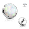 Ahora puedes conseguir el look discreto que te da un microdermal plano, y que además puede ser irresistiblemente bello. Se trata de una sensacional joya para el piercing microdermal con un exquisito diseño, y con un look súper brillante gracias al bonito ópalo en su centro. Este brillante está rodeado por un bonito borde de color plateado y como ves en la fotografía, solamente sobresale un poco, por lo que parece prácticamente plana. Puedes colocar esta bonita joya en cualquier parte de tu cuerpo, sin miedo a que se pueda enganchar con la ropa.