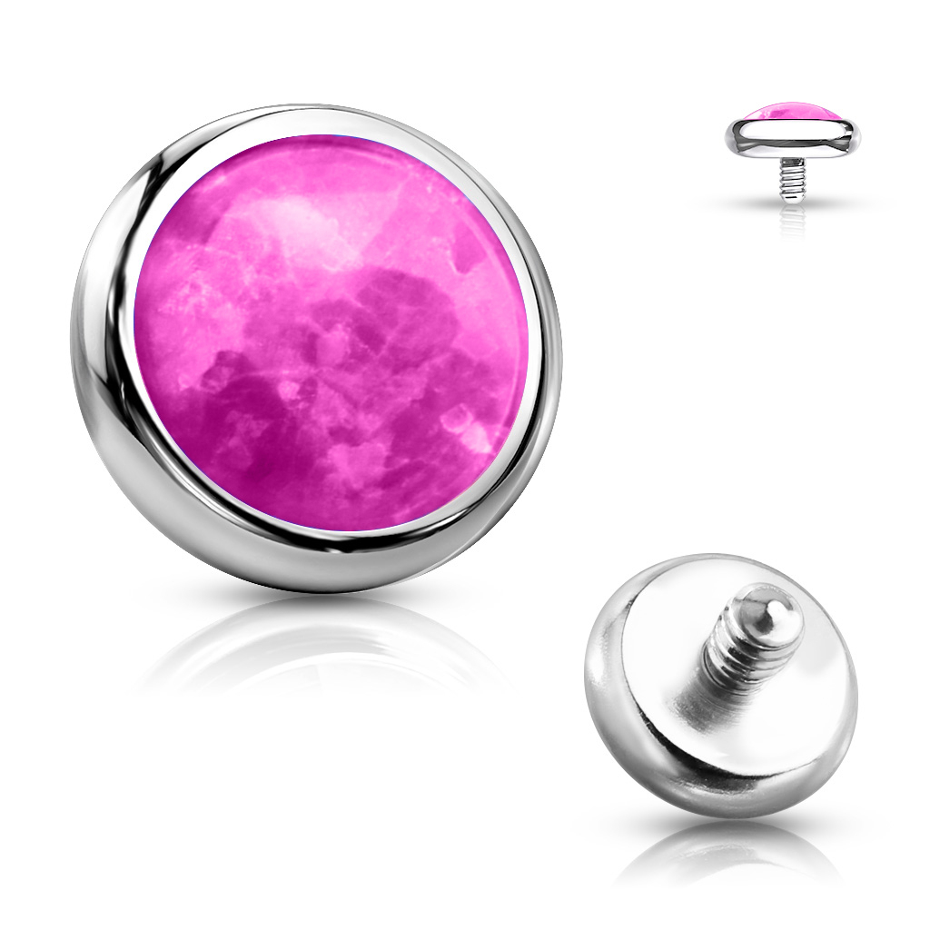 Ahora puedes conseguir el look discreto que te da un microdermal plano, y que además puede ser irresistiblemente bello. Se trata de una sensacional joya para el piercing microdermal con un exquisito diseño, y con un look súper brillante gracias al bonito ópalo en su centro. Este brillante está rodeado por un bonito borde de color plateado y como ves en la fotografía, solamente sobresale un poco, por lo que parece prácticamente plana. Puedes colocar esta bonita joya en cualquier parte de tu cuerpo, sin miedo a que se pueda enganchar con la ropa.