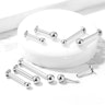 El labret que tenemos aquí tiene un grosor de barra de 1,2 mm y está disponible en varias longitudes y con diferentes tamaños de bola. En otras palabras, debería haber suficientes opciones para que encuentres el labret perfecto para tu piercing. Los labrets quedan bien en el piercing del labio o de la oreja gracias a la placa plana de la parte trasera.