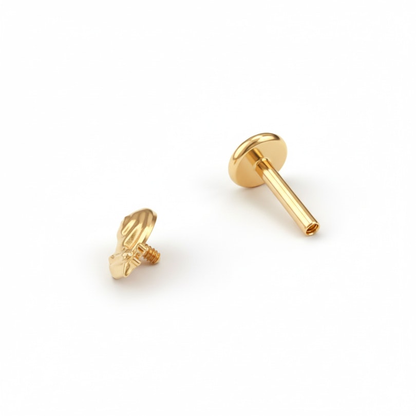 El labret caracol de titanio le da un toque divertido a tu combinación de joyas en la oreja. Con su mini espiral y perfil plano, se apoya cómodo sobre la piel y te sienta igual de bien llevándolo solo, que combinándolo con varias joyas para piercings. Disponible en dorado y plateado, añade un detalle juguetón sin robarte el estilo.