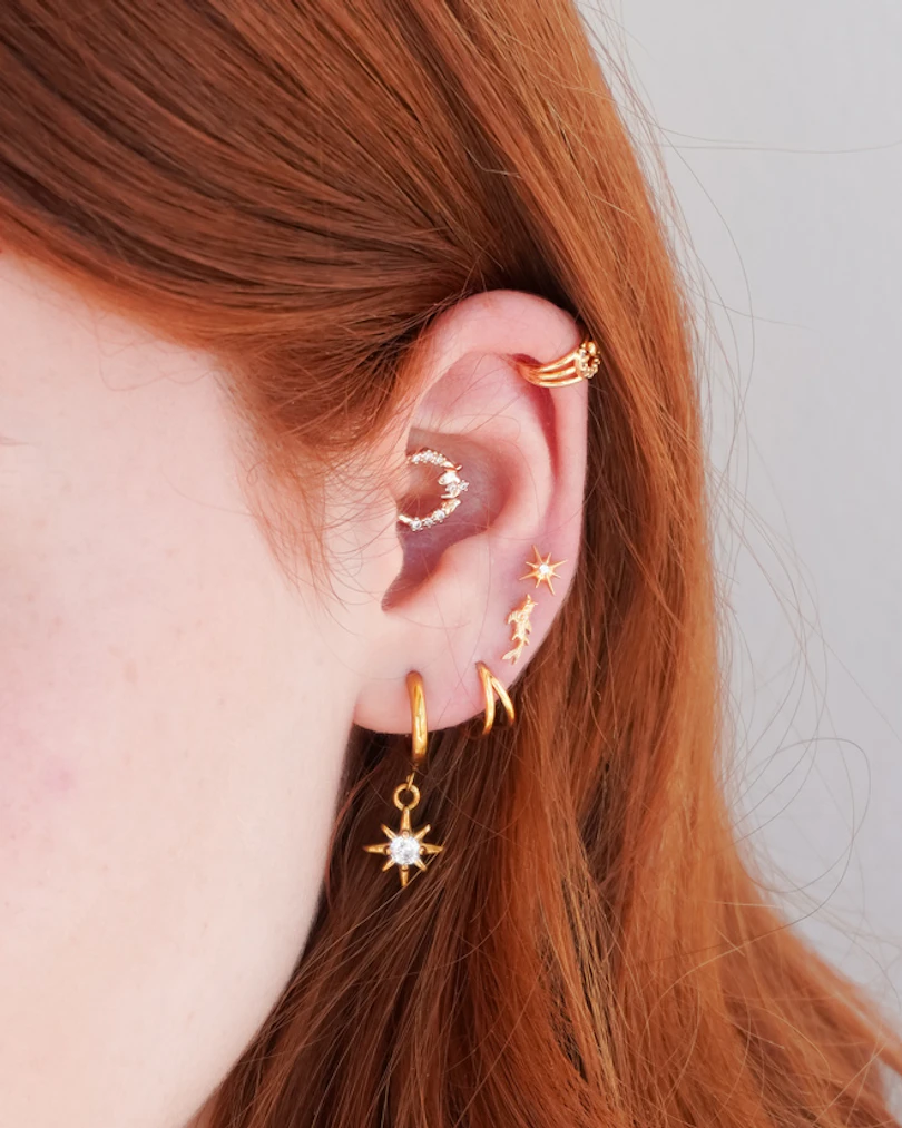 Con la parte de atrás plana; perfecta para piercings como el conch, helix, lóbulo o tragus. Porque, incluso en caos, puedes fluir.