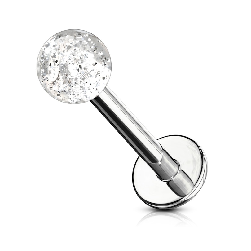 Estupendo labret hecho en acero quirúrgico con bola de acrílico.