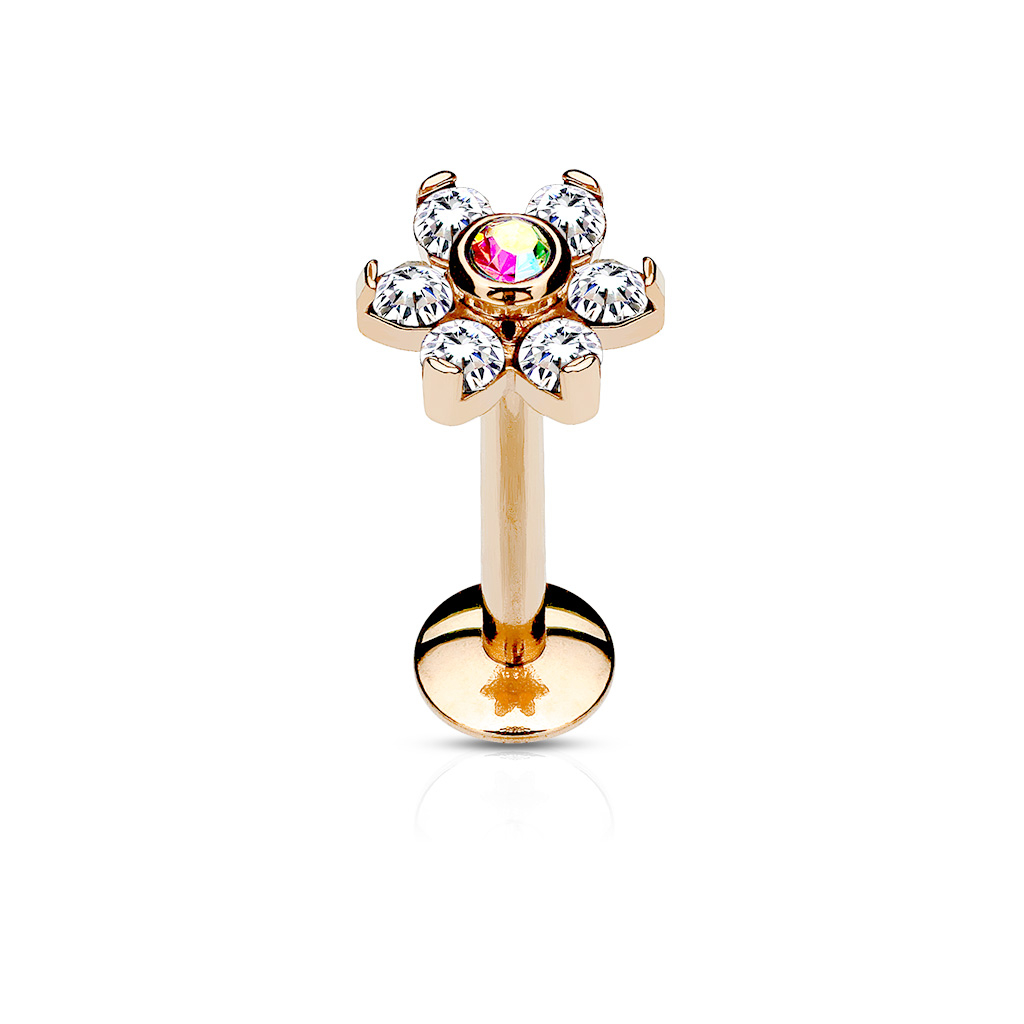Nombre: Labret con flor y rosca interior-Oro rosa-Aurora boreal