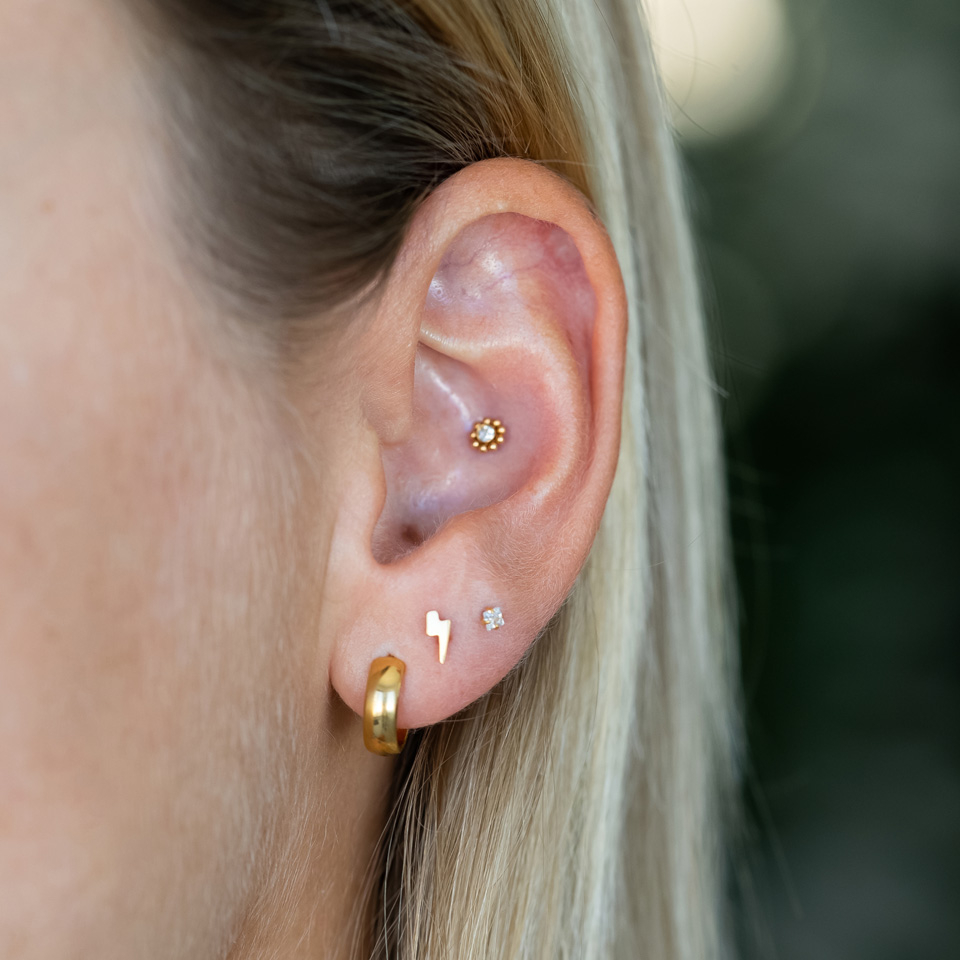 Ubicación: Tragus, Spiderbite, Snakebite, Medusa, Madonna, Lower labret, Lóbulo, Helix, Conch, Anti-helix, Angelbite