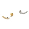 La cuenta arqueada está hecha de latón y la joya es de acero quirúrgico, con un revestimiento que puedes elegir entre varios colores. Puede que te haya llamado la atención el modelo en oro rosado, por ejemplo. El arco es relativamente largo, con una longitud de aproximadamente 15 mm. Así que lo puedes usar en el piercing de la hélice o en el piercing normal del borde de la oreja. Dónde te lo pongas está en tus manos, pero asegúrate de que las medidas sean adecuadas para tu piercing.