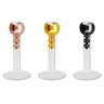 Esta joya está disponible en varias longitudes así como en varios colores: elige la combinación de colores que quieras para tu piercing. Cualquiera que sea el modelo que elijas, el brillante de está joya será de color blanco. El brillante se encuentra en la parte superior de la pequeña bola de 2,5 mm, que será del color que elijas.