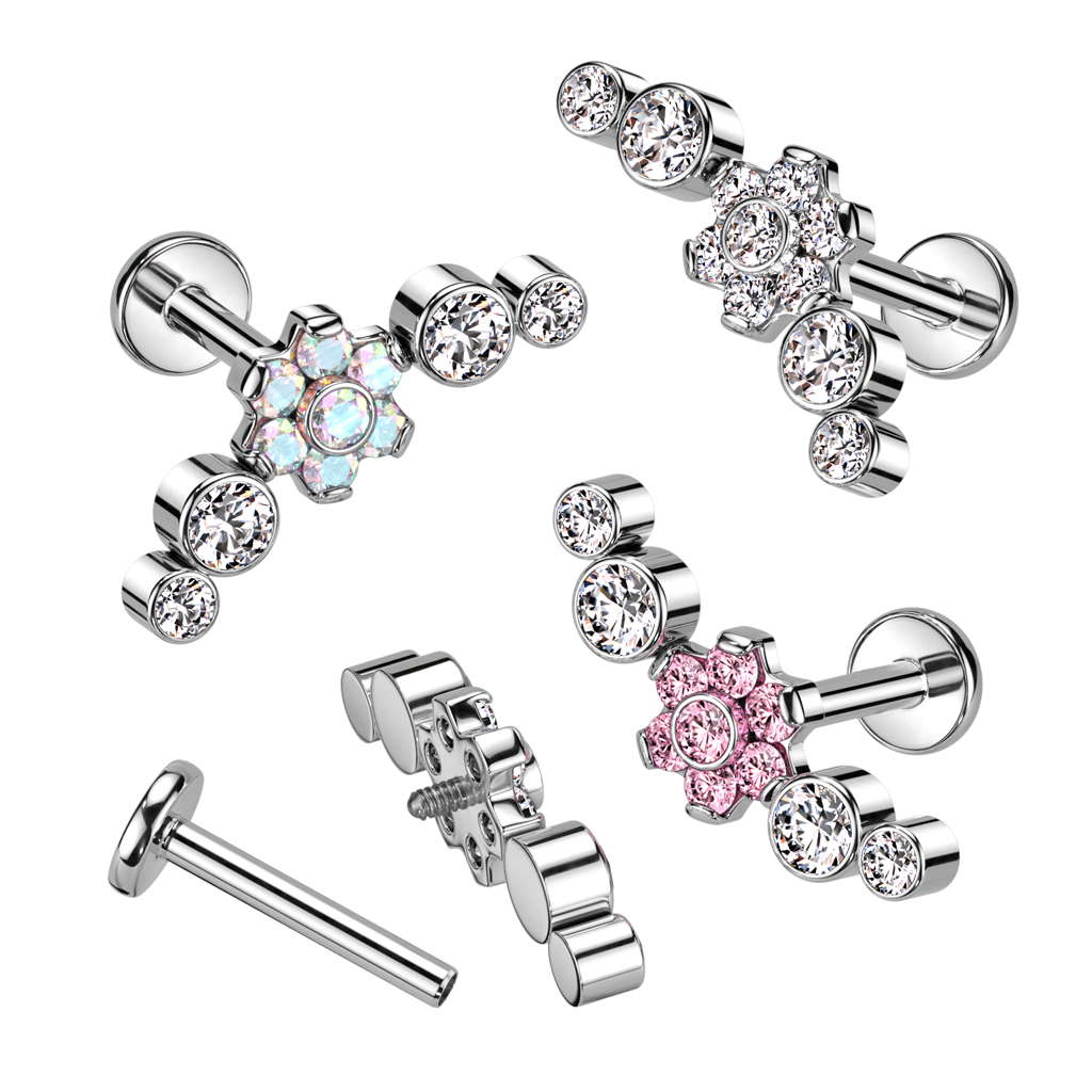 Nombre: Labret de titanio adornado con precioso diseño de flor