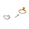 Este labret luce una barra curvada que se ajusta a la perfección a la forma de la oreja si eliges llevarlo en el piercing helix. También queda genial en el lóbulo. Incluye una delicada cadena adherida a ambos extremos de la barra, que cuelga grácilmente por debajo de esta.