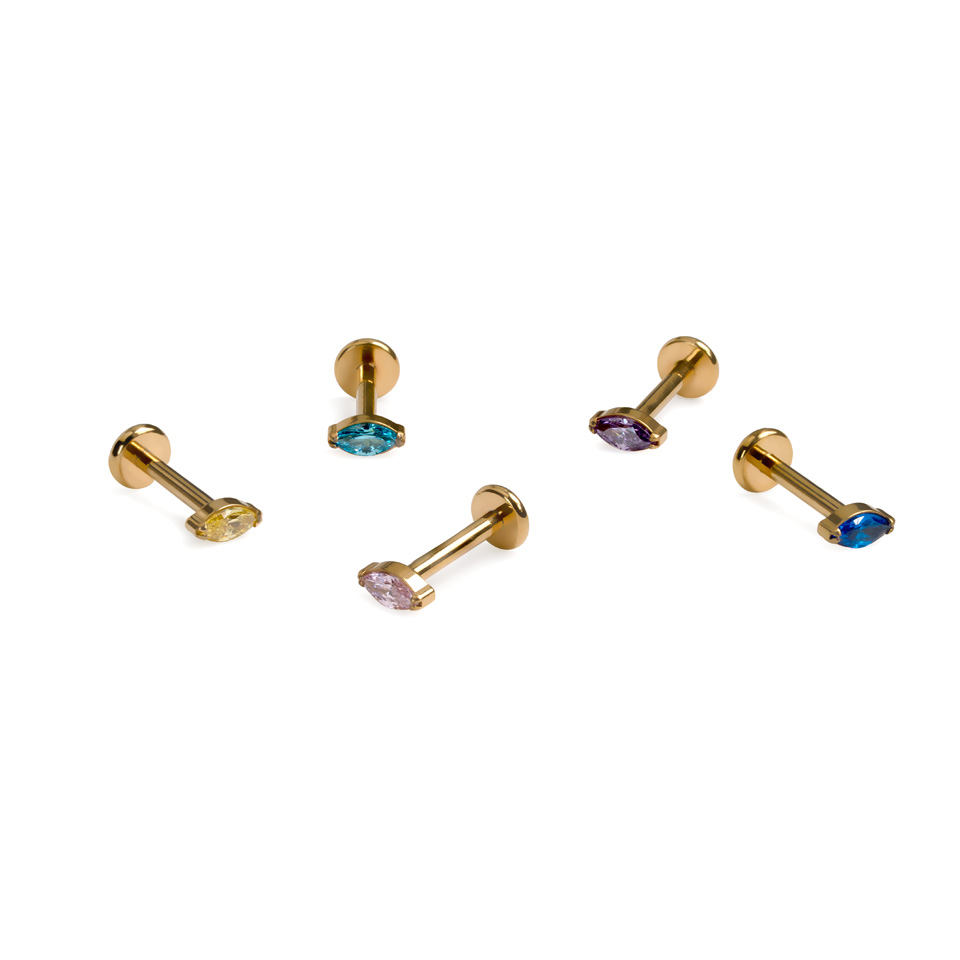 La piedra con corte marquesa añade un detalle refinado que combina con cualquier combinación de pendientes. Fabricado en titanio ASTM F136, es hipoalergénico, waterproof y, con los cuidados adecuados, puede durar toda la vida. La rosca interna evita irritaciones y lo mantiene seguro, por lo que una vez colocado, no tendrás nada de que preocuparte.