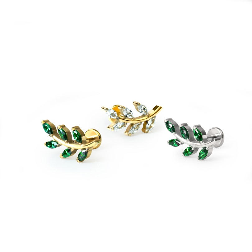 Nombre: Labret de titanio con hoja y piedras brillantes