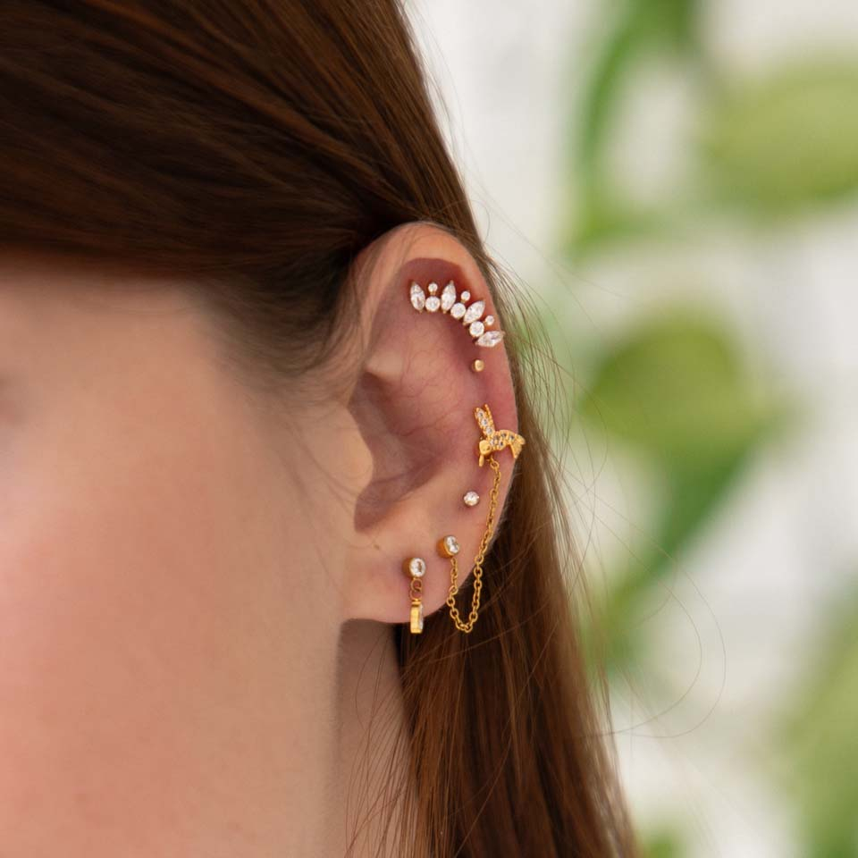 Esta joya es magnífica llevada en el helix. La elegí en dorado, es fácil de llevar y de muy buena calidad.