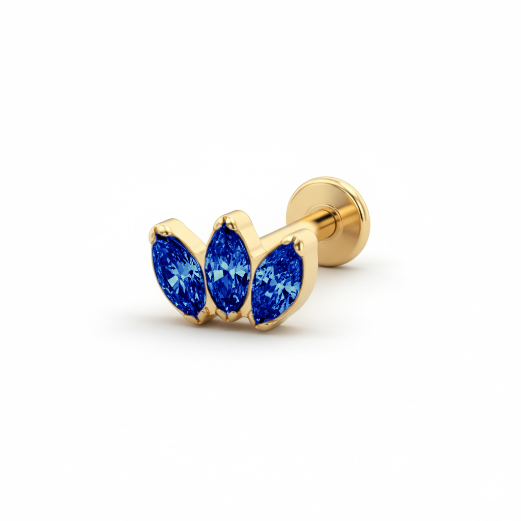 El labret de titanio con tres piedras en el color que elijas demuestra que los pequeños detalles pueden cambiar por completo tu look. Las tres piedras engastadas en garras se unen como una corona, aportando un toque de estructura a tu combinación de pendientes.