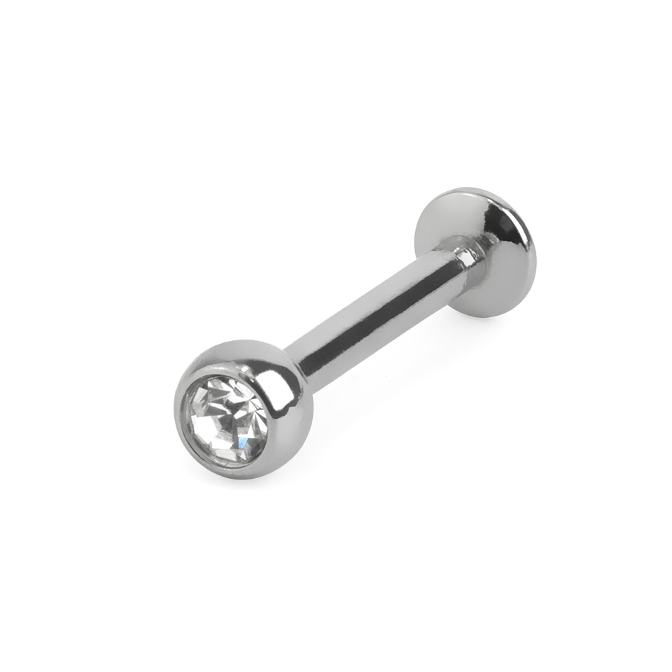El labret que ves en la fotografía se parece mucho a los labrets normales con brillantes. Pero la diferencia es que este labret no tiene ningún tipo de rosca. Debes insertar el brillante de la joya en el extremo hueco de la barra. El brillante se encuentra en el extremo de una pequeña aguja, como la de un alfiler; y como queda dentro de la barra, tienes la garantía de que no hay ninguna pieza que pueda rozar y dañar tu piercing (como ocurriría en el caso de un labret con rosca).