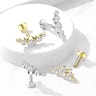 El labret está hecho de oro de 14 quilates y disponible en dos versiones: oro amarillo y oro blanco. Puedes elegir entre una barra de 6 mm o de 8 mm de largo, según tus necesidades. Los 5 brillantes de tamaños escalonados llaman mucho la atención, y gracias a la forma arqueada en la que están colocados, el labret quedará perfecto en tu piercing helix o en el lóbulo de la oreja.