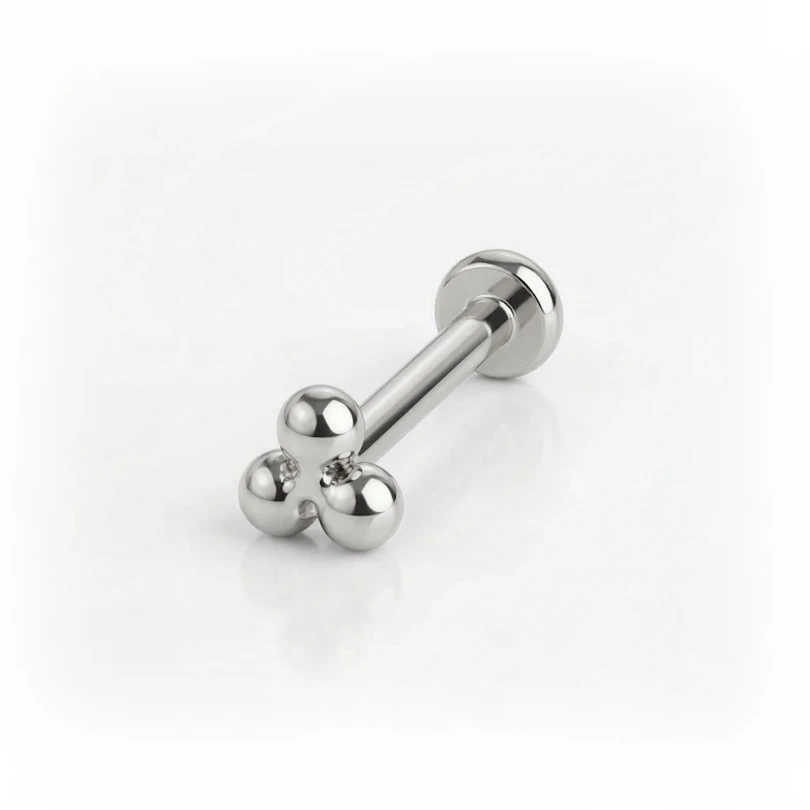 Nombre: Labret push-in de titanio con bolitas en triángulo