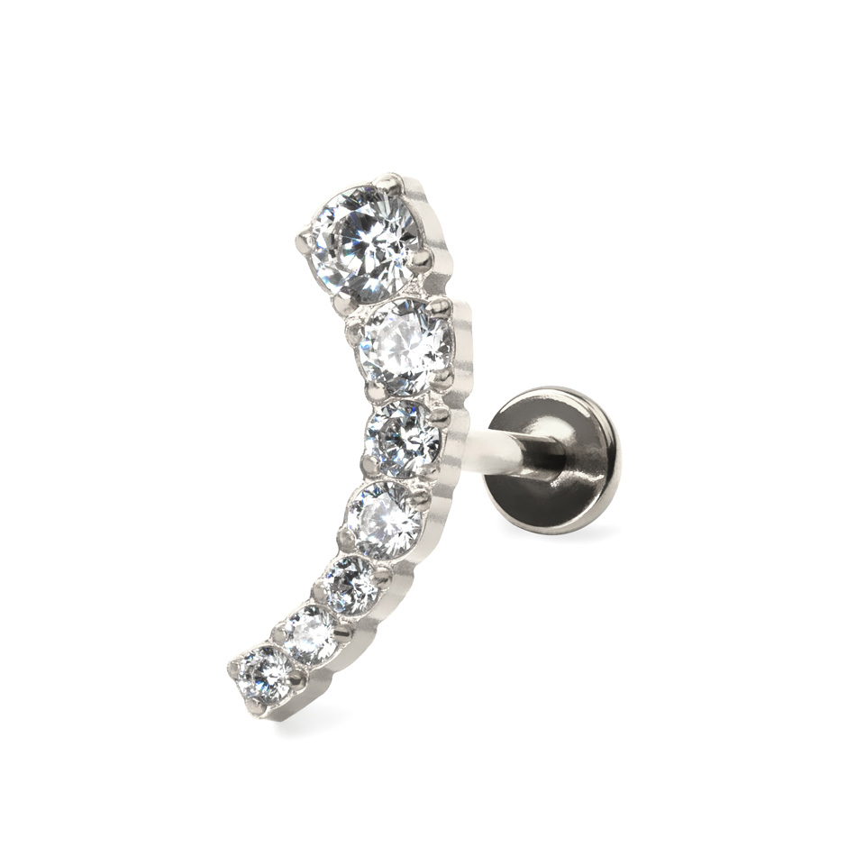 Labret push-in de titanio con línea curva de piedras