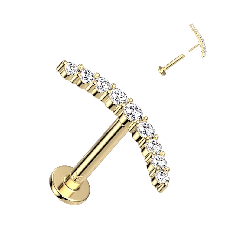 Nombre: Labret push-in en oro de 14 quilates con arco de circonitas