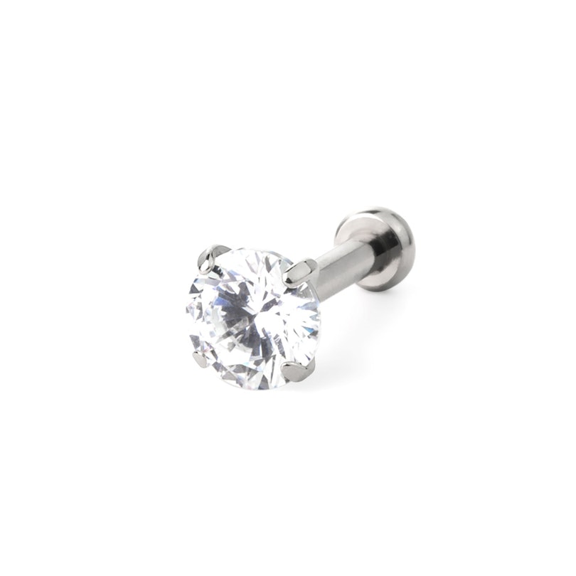 Los labrets son un tipo de joya imprescindible porque se pueden usar en muchos tipos de piercings. Este labret de diseño clásico está disponible en varios tamaños, por lo que podrás encontrar el tamaño adecuado para tu piercing. El labret tiene un brillante de color claro colocado en un engaste de garras.