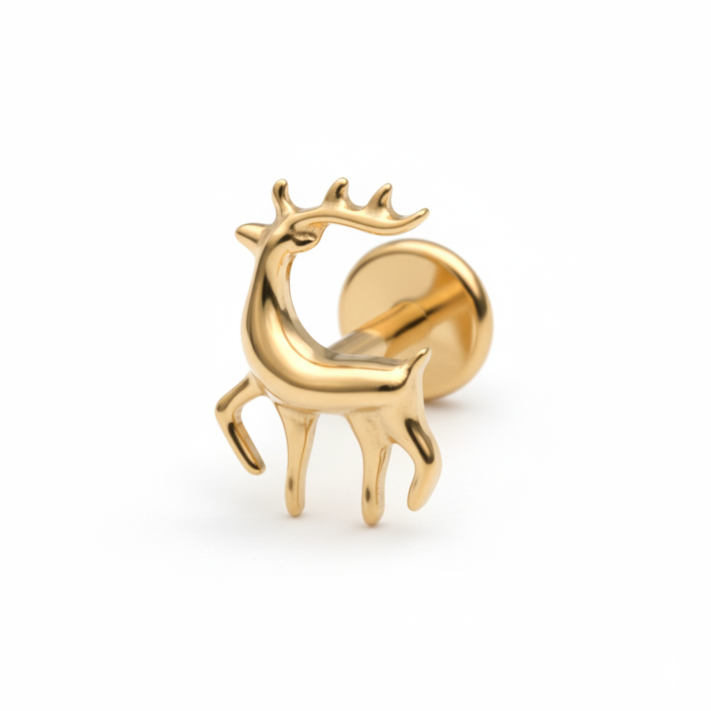 El labret reno de titanio aporta un toque navideño a tu colección de pendientes. Con forma de reno en plena carrera, es un pequeño recordatorio de las acogedoras luces, las noches tranquilas y esa alegría de fin de año que nunca pasa de moda.