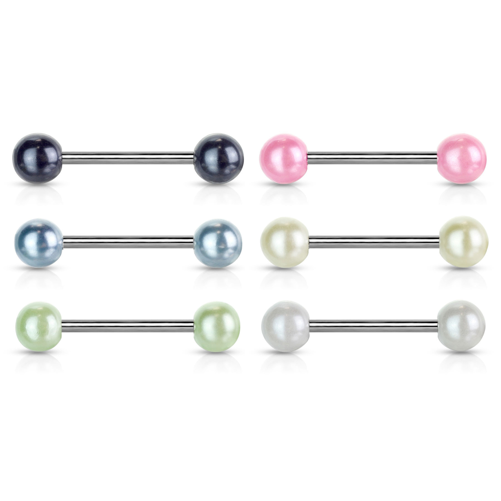 He aquí una oportunidad irresistible: consigue estos impresionantes colores pastel para tu piercing en la lengua. Aquí conseguirás nada menos que seis piercings en la lengua en una sola compra, todos ellos con delicadas bolas perladas, tanto en la bola superior como en la bola inferior.