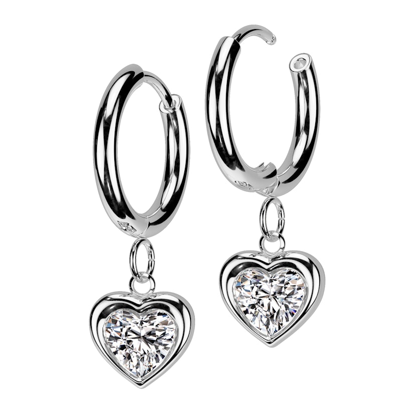 El par de aros con corazón colgante añade un toque juguetón a tu look de cada día. Cada aro incluye un pequeño colgante en forma de corazón que se mueve contigo. Gracias al cierre de bisagra, son fáciles de poner y quitar, así que son una opción sencilla para esos planes que empiezan de día y terminan de noche. Disponibles en colores oro y plata.