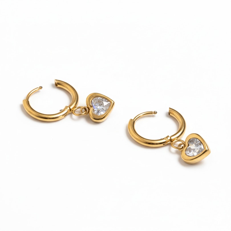 Par de aros con corazón colgante