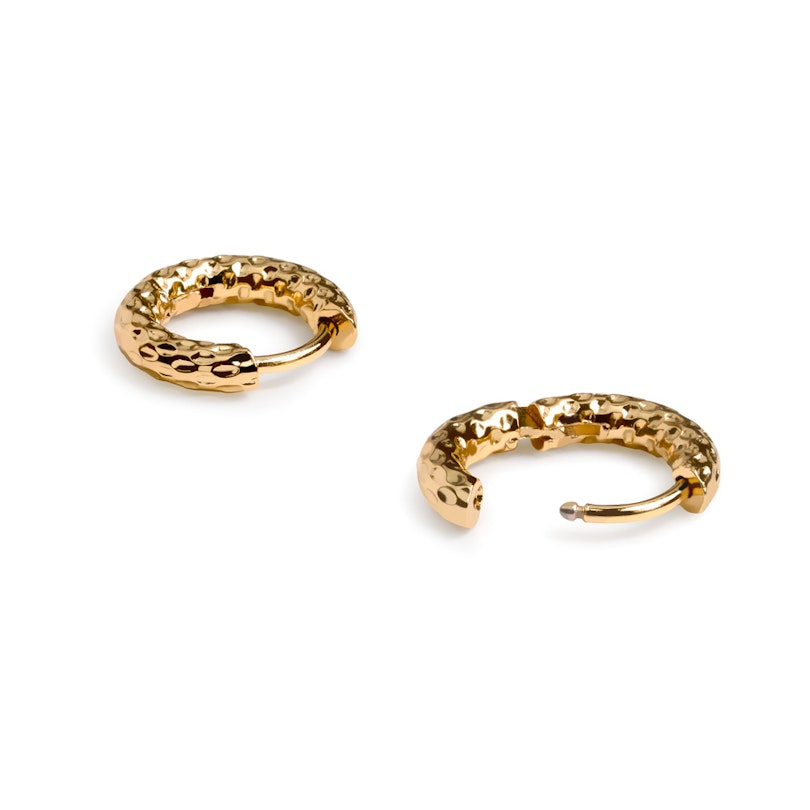 ¿Quieres un cambio de estilo? Estos pendientes con efecto martillado van a ser tus nuevos imprescindibles. Son ideales para el lóbulo y crean la base perfecta para combinar con tus joyas favoritas. Además, gracias a su cierre de bisagra, son facilísimos de poner y quedan bien seguros. Estilo sin esfuerzo: garantizado.