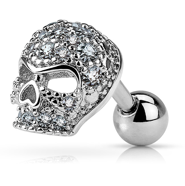 Esta increíble calavera está montada en una barra de 6 mm de longitud y tiene un cierre con una bola de 4 mm. Puedes usar esta joya en la mayoría de perforaciones hechas con aguja, por ejemplo: para el piercing en el tragus, en la hélice o en el lóbulo de la oreja. Sea donde sea, esta joya les dará a tu oreja y a tu look un aire de lo más rockero.