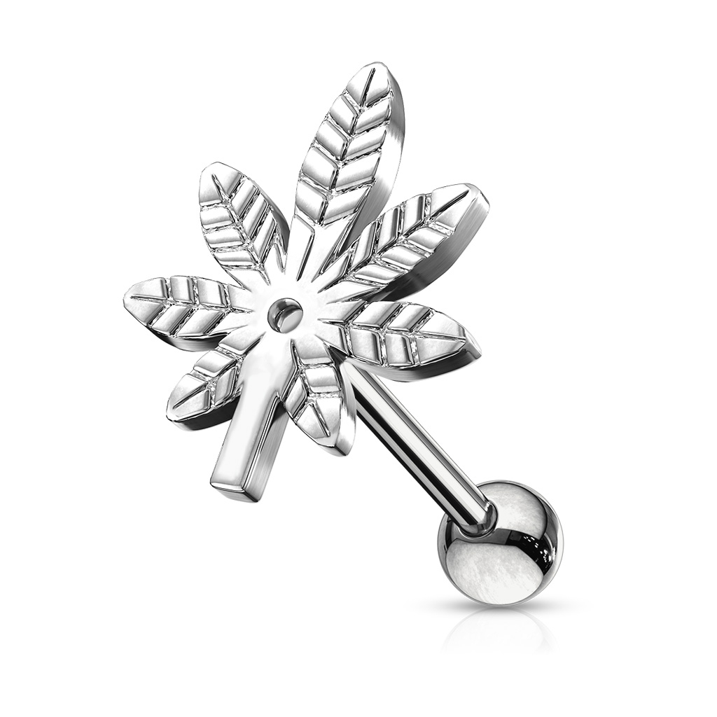 Este bonito pendiente consiste en una barra recta de 6 mm, en cuyo extremo encontramos una hermosa hoja. Por su característica forma, podemos deducir que se trata de una hoja de cáñamo. Por aquello de no hacer apología del cannabis, no diremos que se trata de una hoja de marihuana. De este modo, nos ahorramos la discusión :)