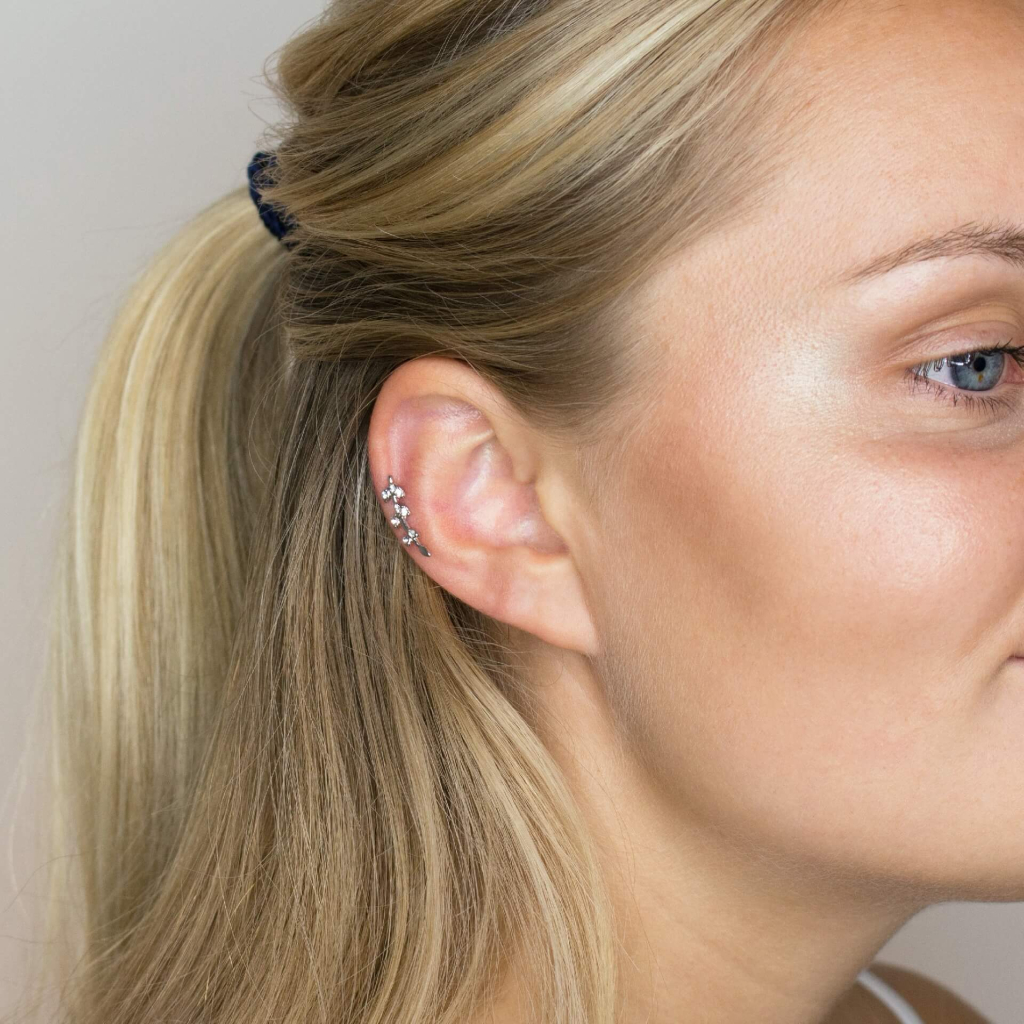 Aquí puedes comprar la más delicada de las joyas que se ajustará perfectamente a tu piercing en el trago o en la hélice, e incluso en el lóbulo de tu oreja. Esta joya es algo distinta a las joyas convencionales para la oreja, ya que no se cierra con el típico cierre, sino que lleva una bola que se debe enroscar. Al mismo tiempo, se trata de una joya muy elegante, que quedará estupenda tanto en tu piercing en la hélice como en el trago.