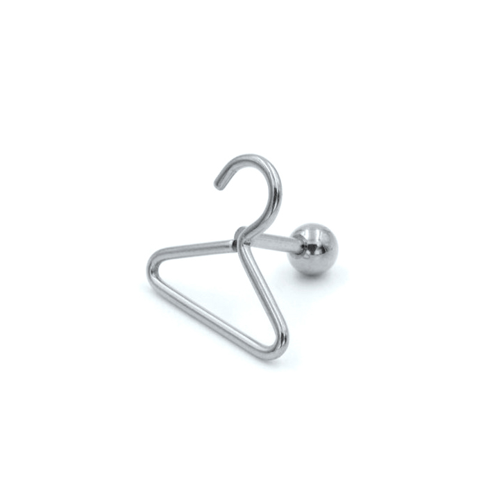 Quizás no hubieras pensado en esta posibilidad, pero ahora tienes la oportunidad de tener una pequeña y bonita joya para tu oreja, que demuestran tu afición por la ropa y los complementos. Esta joya está hecha de una pieza de metal, a la que se le ha dado la forma de percha para la ropa, y mide 15 mm de ancho y 13 mm de alto.